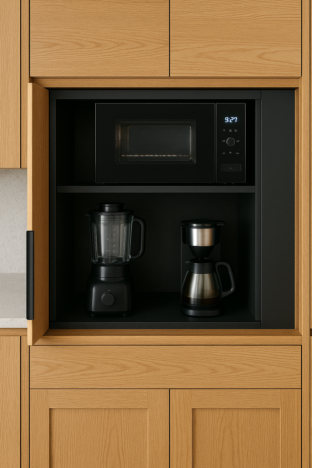 Miele 포켓 도어에 오븐 + 블렌더 + 커피 스테이션 숨김 구현 foodnhotelasia.com+10livingetc.com+10onionsaustralia.org.au+10.
