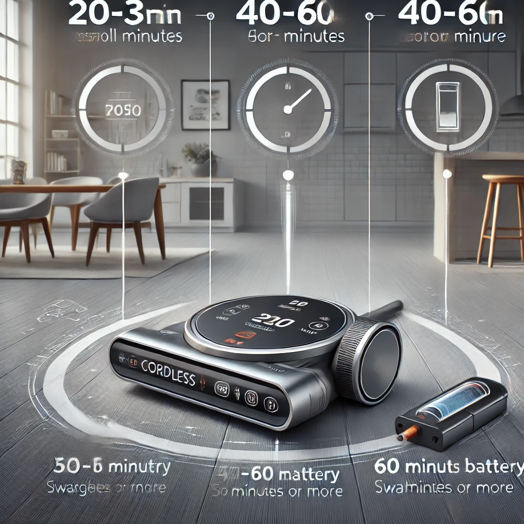 무선청소기는 배터리로 작동하므로 사용 시간이 중요합니다.
