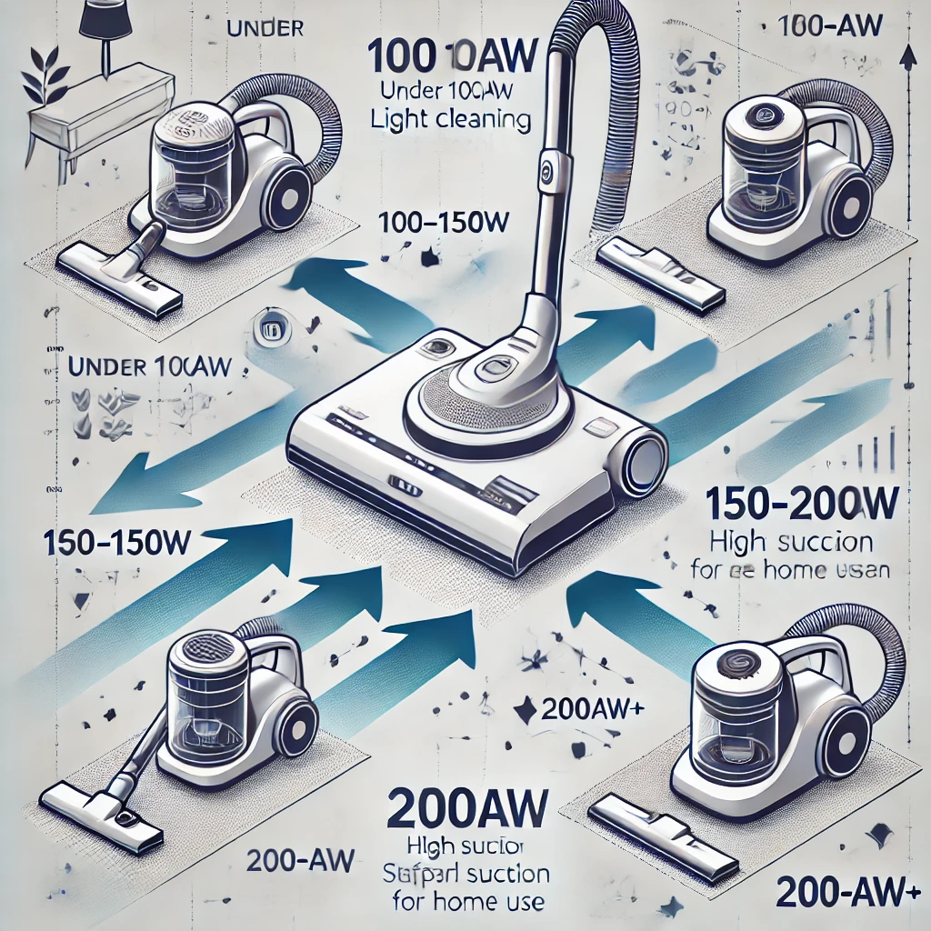 - 150~200AW: 강한 흡입력이 필요한 가정용 청소기
